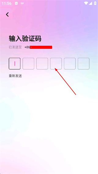 4、最后在在输入验证码页面,填写收到的6位验证码,完成账号登录。