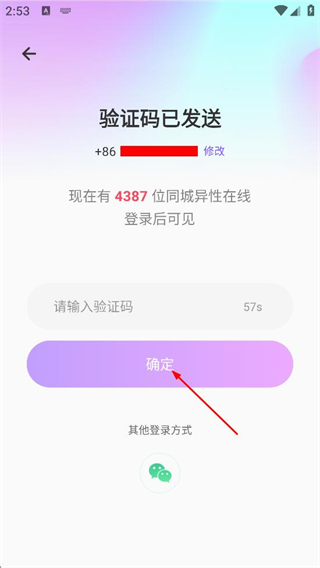 4、在验证码页面,填写请输入验证码后,点击确定,完成账号登录。