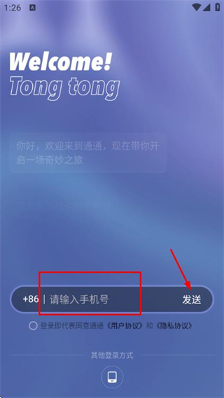 1、在使用协议隐私政策弹窗中点击同意按钮,进入登录页面。