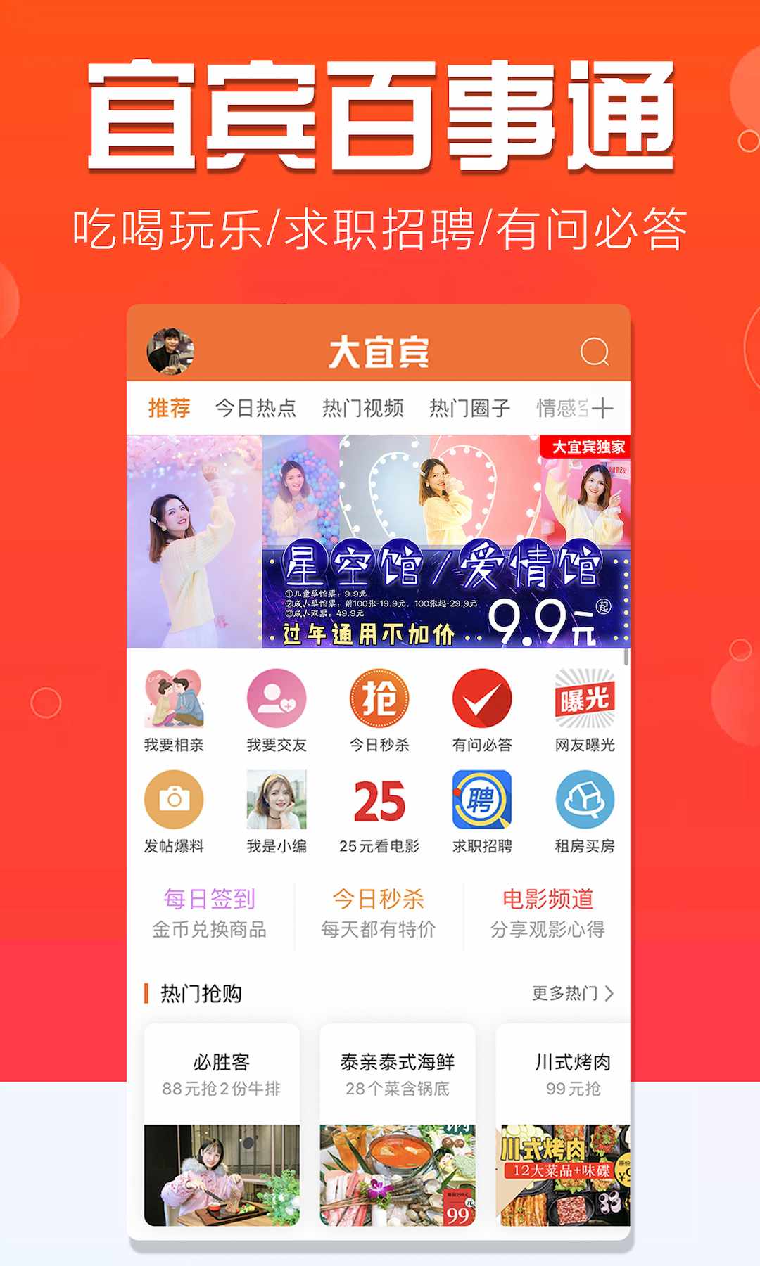 超过80万人都下载了大宜宾APP,本地门户、吃喝玩乐、求职招聘、相亲交友,下载大宜宾APP,满足你对精彩生活的所有想象!