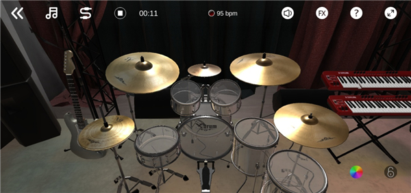 1、进入X架子鼓App界面选择模式,在场景点击FX可以设置特殊音效,以达到用户的演奏效果。