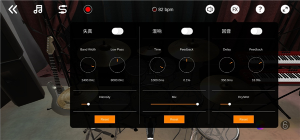 同时,X架子鼓App拥有FX特殊音效(Special Effects),包含上真、混响、回音可调节,还支持架子鼓、上方键盘、下方键盘的音色选择,满足不同用户需求使用!