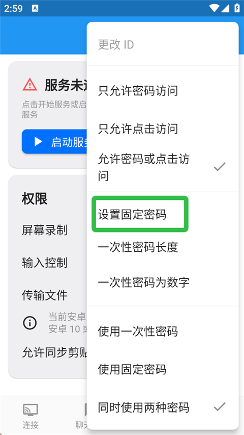 3、点击远程ID栏右侧的箭头开始连接,输入访问密码,密码可在pc端查看。