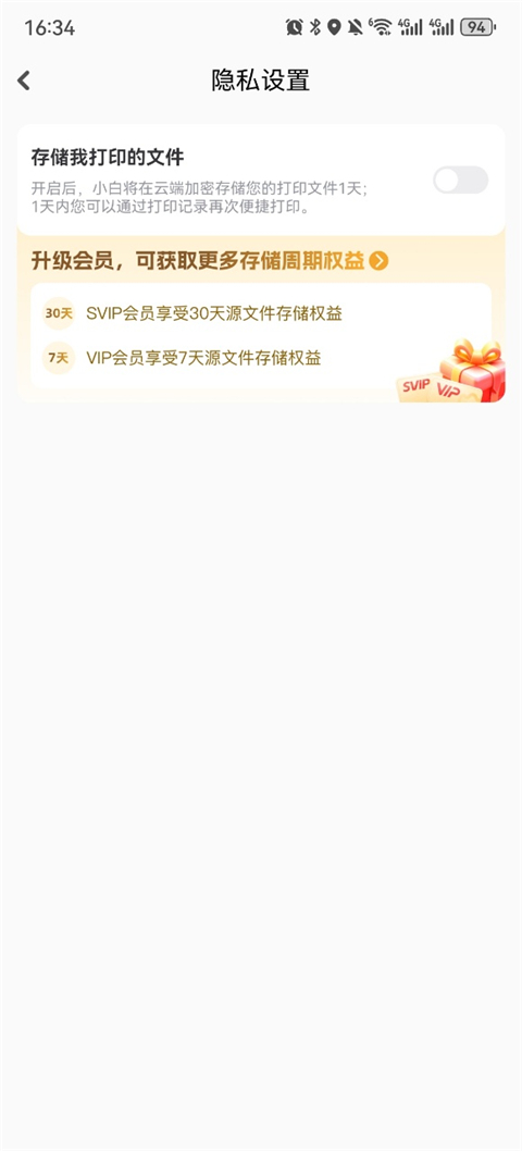 2、在隐私设置中开启云存储服务即可。