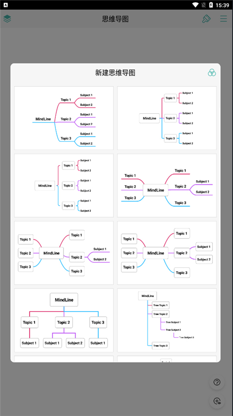 1、首先我们需要下载安装好MindLine思维导图手机版,点击进入软件点击右上角选择新建导图;