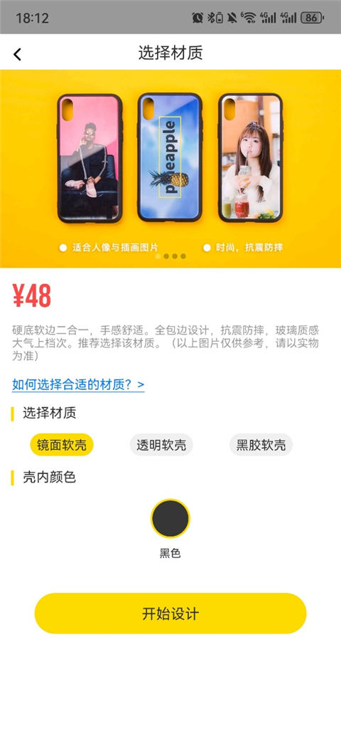歪壳app提供透明软壳、镜面软壳、黑胶软壳三种材质让你选择,选择后即可在手机壳中添加图片,设计完成之后用户还可以实时一键购买。同时,应用中还有大量的手机壳可以直接购买,是众多设计师精心设计而来。