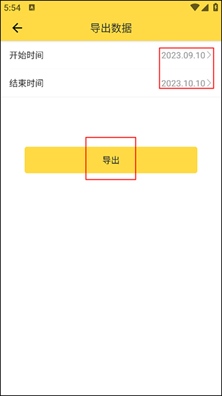 3、来到导出数据页面,上方可以选择需要导出的数据时间,设置好了之后点击“导出”按钮即可。