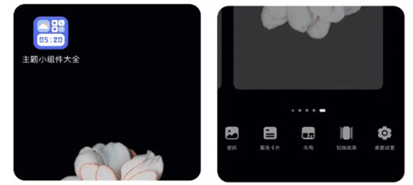 用户可以点击左下角的组件进入组件页面,可以设置热门、灵动岛、相册、倒计时等多种多样的主题小组件。