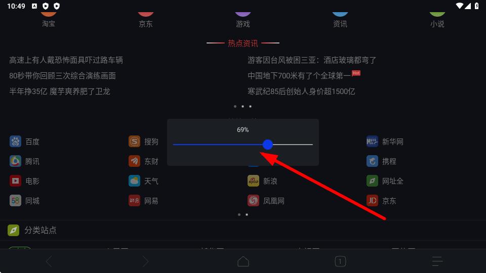 3、开启夜间模式后,可通过出现的亮度调节条,调整夜间模式下的屏幕亮度。