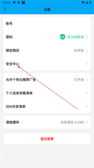 2、进入设置页面之后,即可点击安全中心选项。