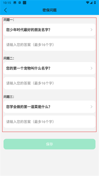 4、选择问题并输入对应的答案,然后点击保存按钮。