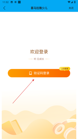 2、进入喜马拉雅少儿登录界面,点击验证码登录后跳转至喜马拉雅账号授权页面。