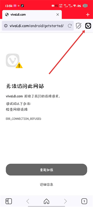 1、打开极客浏览器,点击右上角的Vivaldi图标。