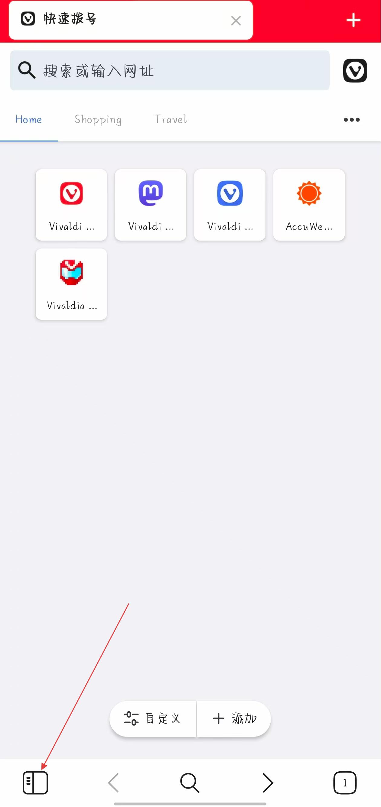 1、打开Vivaldi浏览器,点击左下角的图标,进入书签界面。