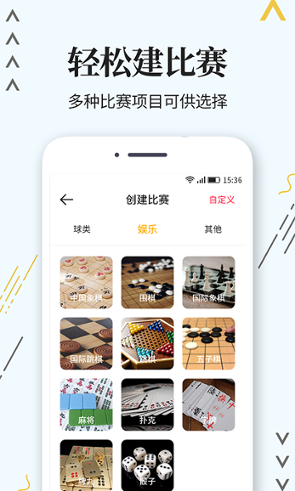 1,创建比赛-选择一种比赛类型,点击后,进入房间等待界面,选择加号邀请好友参赛,设置单人或组队模式,如果没有您要的比赛分类,可以使用自定义功能创建比赛名称。