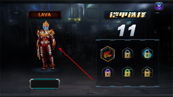 2、进入铠甲选择界面,挑选已解锁的铠甲,确定本次战斗使用的角色。