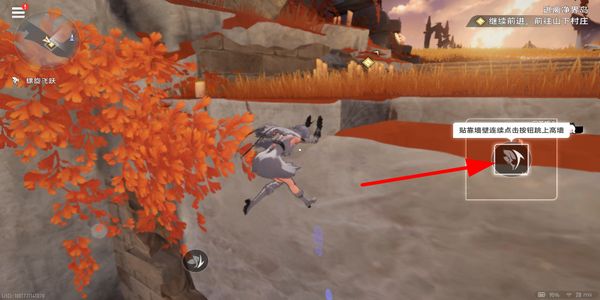 3、贴近墙壁时连续点击对应按钮,让角色完成爬墙动作,跨越地形障碍,继续向目标区域前进。