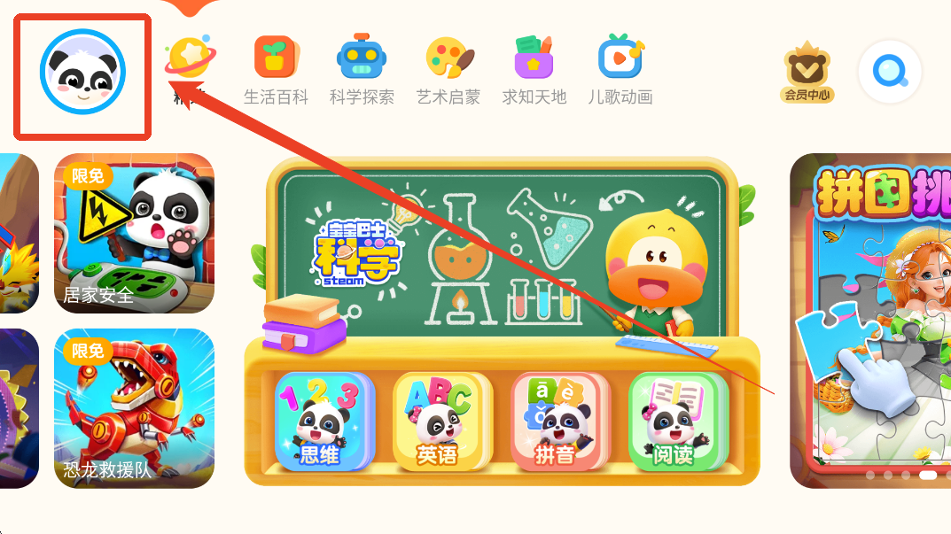 2、进入到家长中心,需要选择要求的物体。