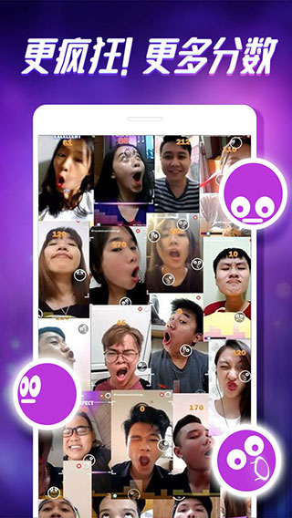 4、随着手机屏幕上闪过的各种表情,需要你用同样夸张地样子模仿出来。
