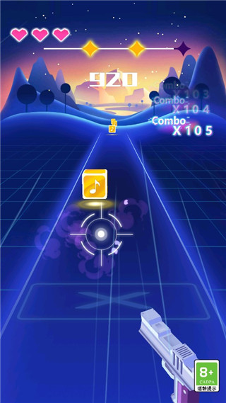 2、用手指点击屏幕上的音符即可瞄准开枪,并不需要你有很强的射击功底;