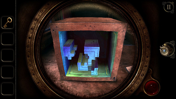 6、组合完成后,就可以使用钥匙打开木盒子啦!打开后可以收集盒子内的神秘三角体。