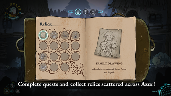 格雷克大冒险阿祖尔的回忆手机版(Greak: Memories of Azur)是一款手绘卡通风解谜冒险游戏。在这里,玩家将扮演Greak、Adara和Raydel三兄妹探索一个充满神秘与幻想的世界的同对抗瘟疫般奇怪生物攻击威胁,过程中通过解谜、战斗和与其他角色的互动,揭开一段古老的历史,找回格雷克失去的记忆。游戏开局只能操控格雷克,陆续解锁姐姐阿达拉、大哥雷德尔,其中格雷克为近身战士,二段跳,身子小可以钻狗洞,可以使用弓弩,姐姐阿达拉远程法师,浮空术(消耗蓝条),水下屏气时间长(强化后可以永久水下呼吸),大哥雷德尔重甲战士,溶于水,带钩爪,可以架盾,战斗中可以自由切换。同时游戏中玩家切换不同角色和NPC对话内容各不相同,搭配上手绘的画风非常值得体验。