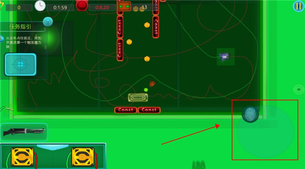 4、点击左边这个按钮可以发射子弹攻击敌人