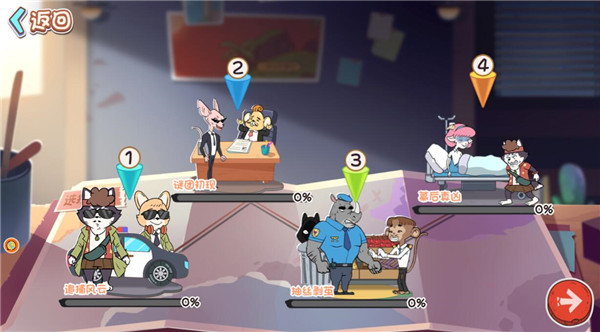 王牌求生大作战是一款解谜游戏,作为一名动物侦探,玩家需要去解开一桩桩迷案,找到事情的真相,创造属于自己的侦探传奇故事。游戏里提供了非常多的关卡,包括追捕风云、谜团出现、抽丝剥茧、幕后真凶等环节,玩家通过和小动物们的对话来寻找漏洞,哪怕是一些很细小的细节都不能错过,通过剧情来深入了解你们的关系,揭开小动物之间的案件,一步一步去发现线索,让真相浮出水面。王牌求生大作战手游采用了卡通风格,画面简洁,人物生动配合好听有趣的音乐,让您沉浸在破案的乐趣当中,喜欢解谜游戏的小伙伴不要错过这款游戏哦!