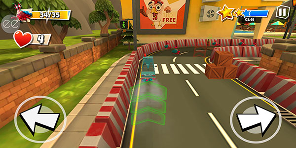6、汽车时会自动加速前进的,玩家只需要通过点击左右两侧的箭头来控制车辆的方向即可。