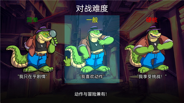 鳄鱼侦探布罗格手游的冒险过程中,玩家还会遇见众多敌人与头目,你可以灵活操控鳄鱼布罗格进行攻击,动作设定包括上勾拳、偷袭、跳劈等七八种招式,也有闪避、硬直、格挡等防御设定,后期还可以解锁另一个角色,并进行升级来提升战斗力,以解决更多的敌人。