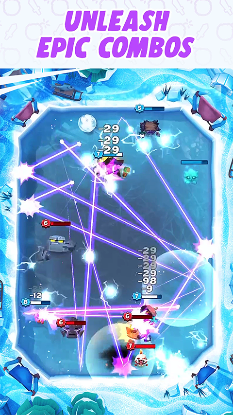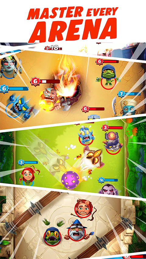 2、前进到更高的舞台和适应你的战略,新的,具有挑战性的战斗环境。解锁惊人的新英雄,将它们添加到您的球队,寻找最好的策略!