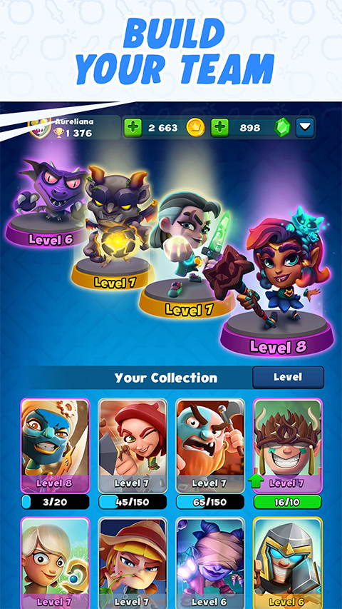 4、收集卡牌来解锁新英雄并升级他们以释放他们独特的能力