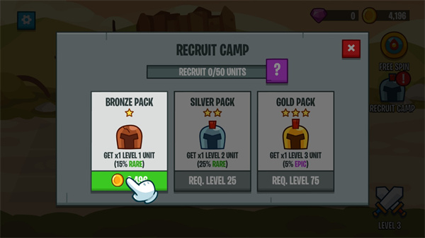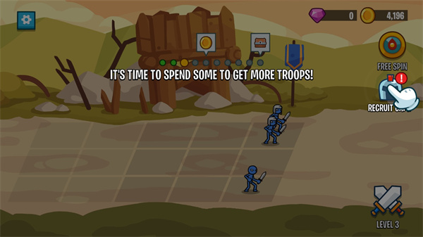 5、随着关卡的增加,敌人会越来越强,你需要通过招募来获得更多的士兵;
