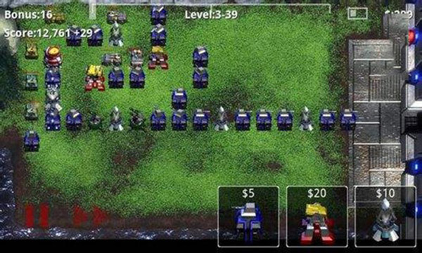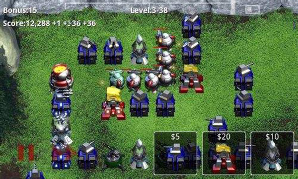 2、刚开始只是一些小兵入侵,到后来就会有更高级的,每攻击一个小兵或者其他都会有金钱奖励的。