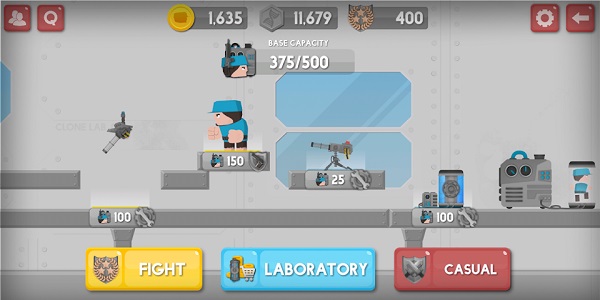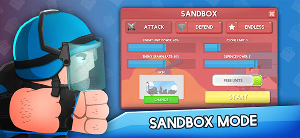 5、选择你自己的单位和不同的克隆,从迷你枪挥舞士兵喷气包或罐设计你的军队。
