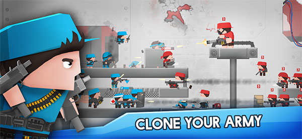 另外,克隆军团和以往的射击游戏大不相同,在游戏中当玩家被击杀之后,关卡虽然会重新开始,但是会多出一个“你”来帮助你进行战斗,这也就意味着死的次数越多,你克隆出来的小伙伴也就越多,这也是游戏的可玩之处。同时,克隆军团中游戏的兵种也是一大特色,比如手枪兵、大刀兵、炸药兵等等,而每一种兵都的技能都是不一样的,你可以操作它们去进行战斗,合理的运用他们可以帮助你更好的赢得比赛。