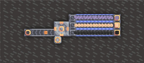 (2)“不能三联”特性并不是没有好处,有时利用好也能方便蓝图的制作。比如用质量驱动器运输多种材料时,如果空间足够,比起装卸器,(反向)分类器显然更加好用: