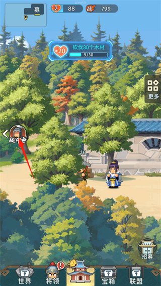 4、随后可以扩大基本呢地盘,点击屏幕的左侧“小兵”标识,可以查看战斗。
