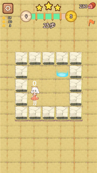 3、探索关卡大概是一款迷宫类型的小游戏,主要是要经过石墙里的所有空白方块。