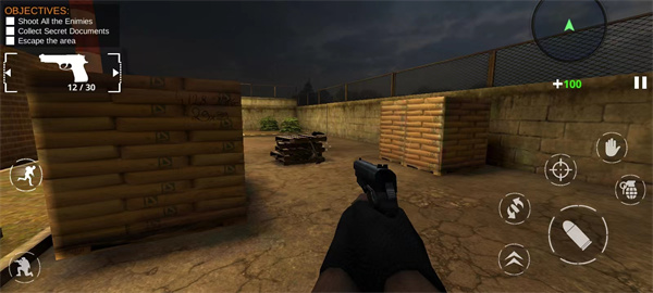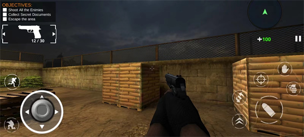 3、正式进入游戏后,左边的移动按钮是虚拟键,玩家手指点上去就会出现,而右边则是射击,瞄准等按钮;