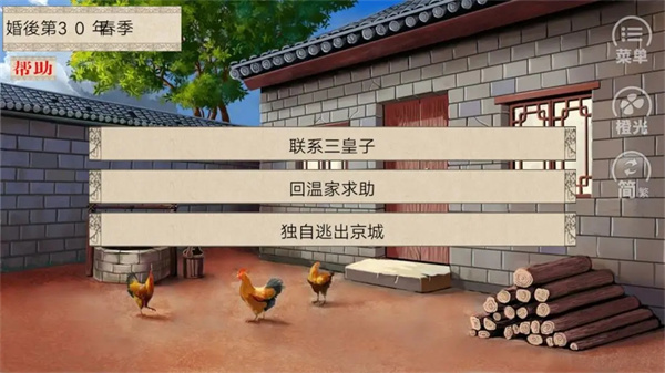 1.要努力赚钱,三皇子来找你就给五百万,人脉也要攒够(人脉1500)。没有帮三皇子人脉也没到1500就会只有独自逃出京城这个选项,到事件发生时,如果所有属性都够就会出现下面三个选项,即下图,存个档。