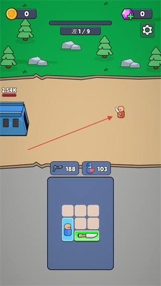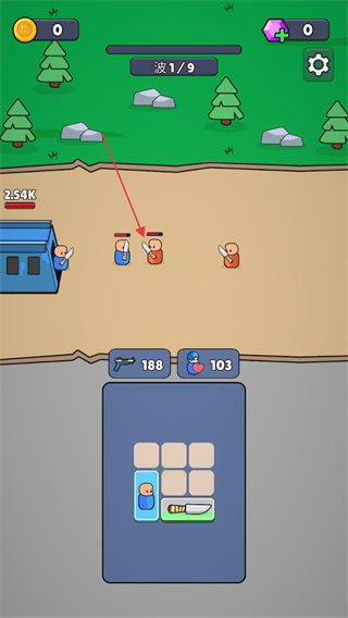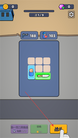 2、装备完成后点击战斗按钮,进入波1/9的战斗关卡。