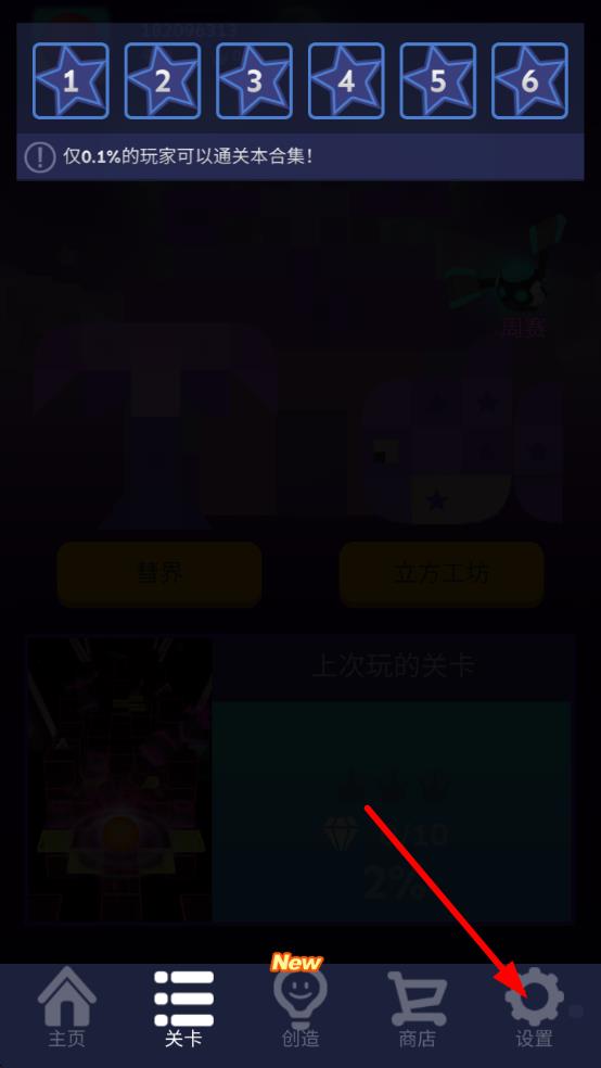 1、打开滚动的天空游戏,点击主界面右下角设置图标进入设置。