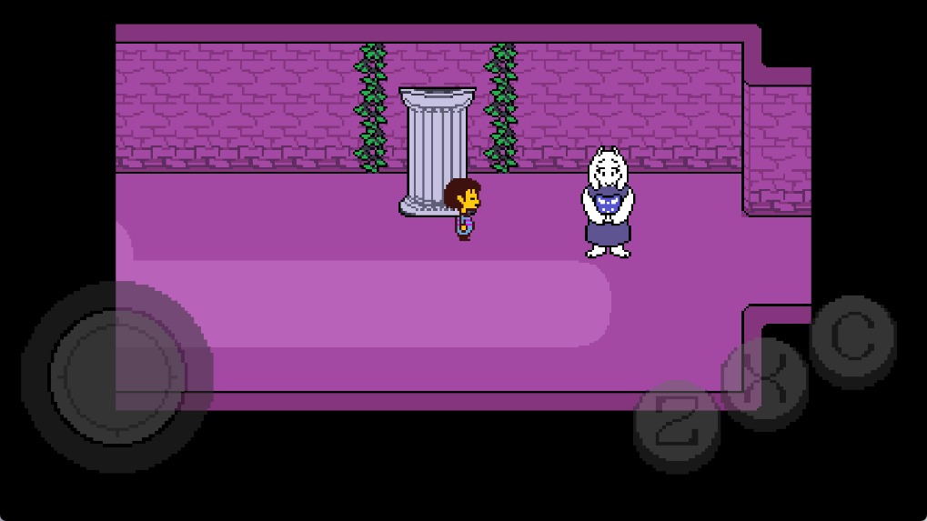 13、其实Toriel就躲在出口的柱子后,她想要测试一下你的信任程度。