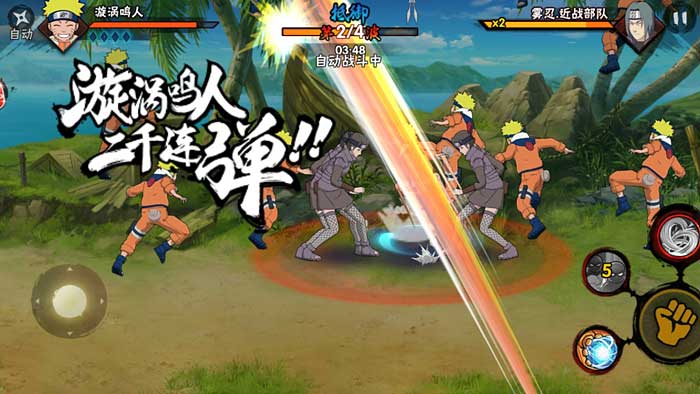 超强打击,拳拳到肉!螺旋丸、影分身、千鸟、木叶旋风、飞雷神……经典忍术任性施放,极致特效,炫放全屏!