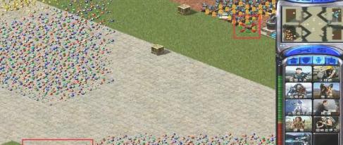 1、选择苏联进入游戏,建造兵营后使用围墙围住兵营,再建造复制中心,我们把矿车停下,金钱停留在了20108上。