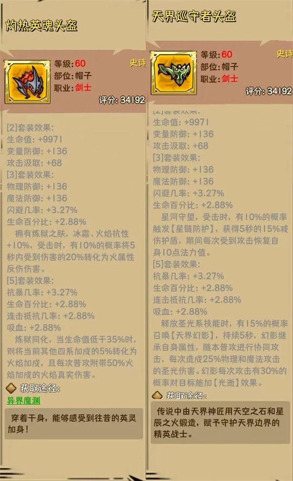 防具也是同武器差不多,天界光属性伤害加成,另一套火属性伤害加成。