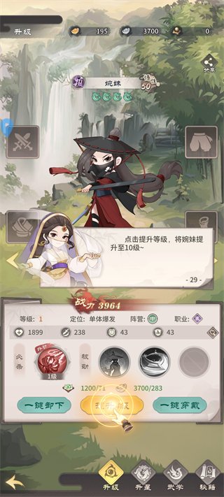 通过升级、升星、武学和秘籍系统,提升侠客的属性和技能效果。