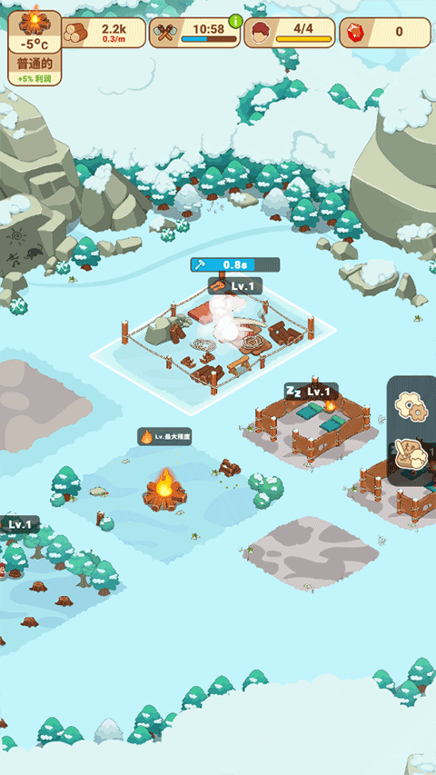 冰河时代生存大亨是一款野外生存题材模拟游戏,在这里,你将成为一群原始人类的首领,带领你的部落在严酷的冰雪环境中奋力求生。资源的分配与管理是游戏的核心,你需要寻找食物和水源,规划住所的建造,确保每位部落成员都能在极端低温中存活下来。每个人的能力都是宝贵的,如何合理利用他们的特长,是你发展壮大的关键。