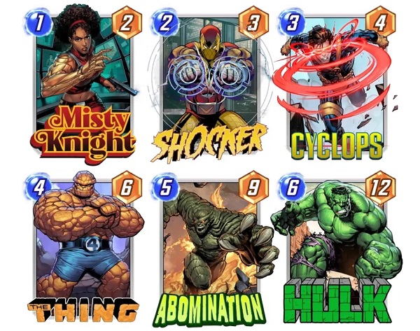 点评:星爵老相好,5费放大版。但由于他触发之后的战力会达到12点,是6费白板浩克的水平,在前期1,2号池里还是一张很坚实的5费曲线,但由于卡池扩大以后5费以上曲线竞争激烈,这种纯提供战力的卡牌通常不太能有用武之地。可能在一些追求单张卡牌极大战力的套牌里可能勉强可用,但这个思路的套牌现在还不太成立。